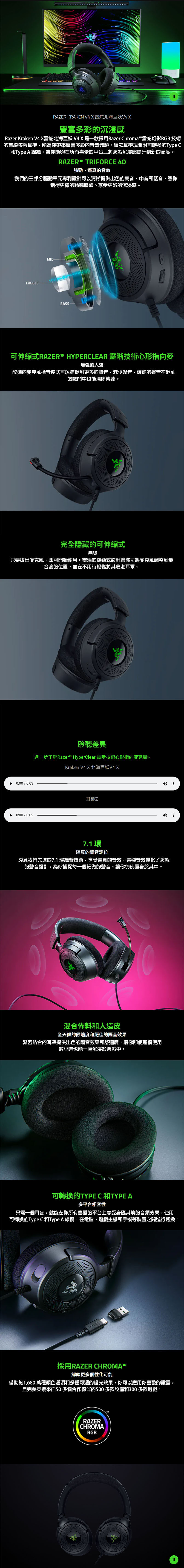 麥克風樣式 可伸縮式Razer™ HyperClear 靈晰技術心形指向麥克風
