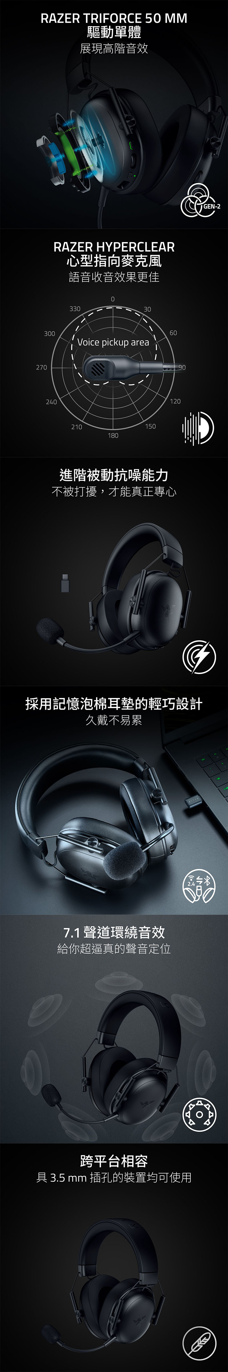 採用超快速的 2.4 GHz 無線連線,讓你在投入高效能、低延遲的激烈遊戲時,能同時享受與遊戲完美同步的音效。