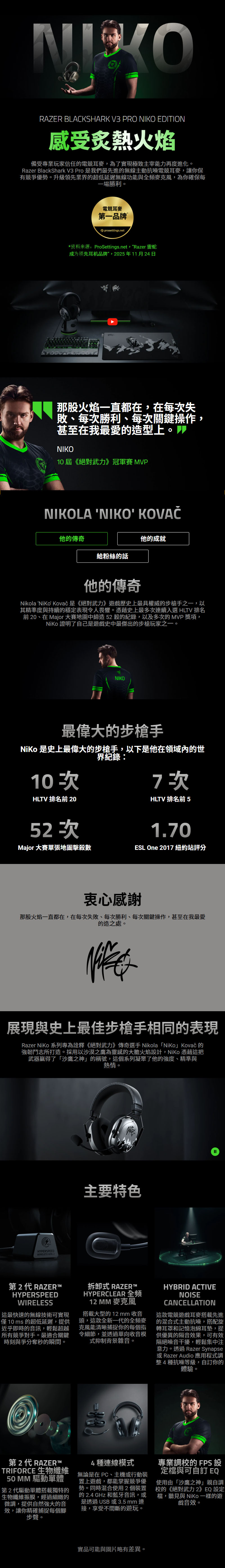 麥克風樣式:拆卸式Razer HyperClear 全頻 12 mm 麥克風