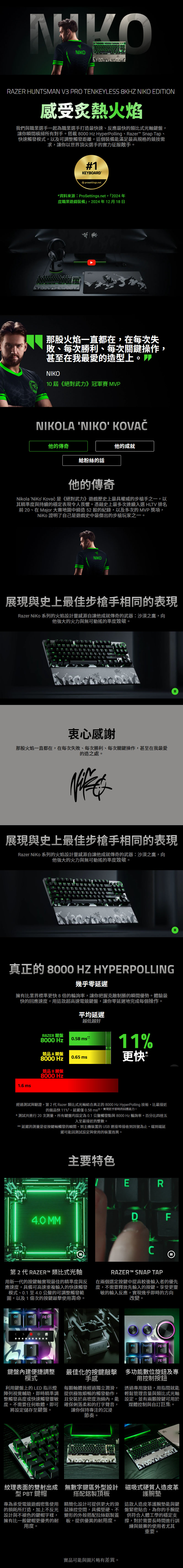 全新的超穩定無線系統效率提高 63% 以上*,並具備真正的 8000 Hz 輪詢率,提供比前一代更低 37% 的延遲,感受完全不同的體驗。