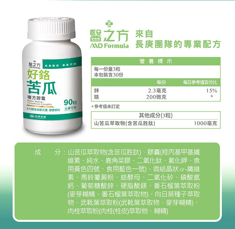 品名:醫之方好鉻苦瓜複方膠囊 90粒/瓶