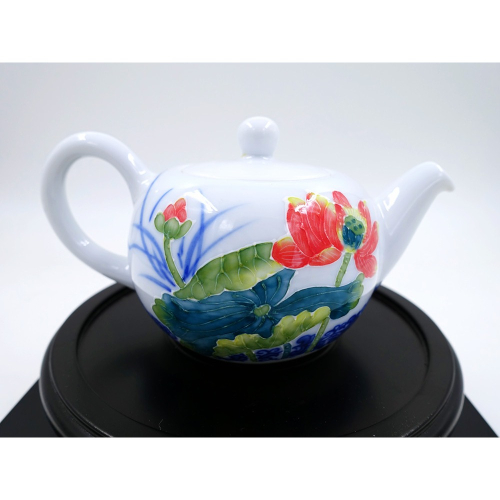 「法華彩瓷」是一種在陶胎瓷器上以立粉技術(又稱瀝線)勾勒出輪廓的彩繪技術。「瀝線」在明代稱作「法華」,是指將泥漿灌入針孔,以極細的針孔在陶胎表面上作畫,再將顏料上在泥漿表面,最終經過一千兩百八十度高溫燒製完成。法華彩的特色在於底層以泥漿凸顯出立體感,上層以鮮豔華麗的顏料展現華麗感。早在中國元代便出現法華彩瓷的技術,至明代時更是發揚光大,技術發展成熟。然而,近年來由於技術缺乏傳承,法華彩逐漸沒落。