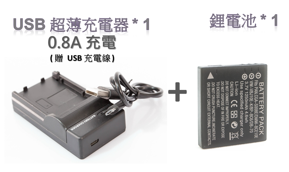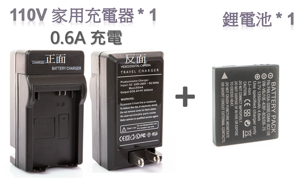 商品配件:Panasonic CGA-S008E / DMW-BCE10 . 彩盒包裝
