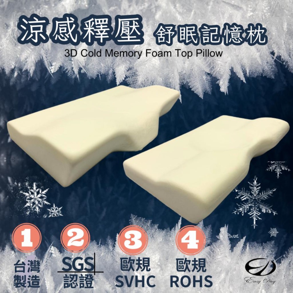 【EASYDAY】高密度80D 100%台灣製造 吸濕排汗 涼感釋壓舒眠記憶枕 枕頭 記憶枕 蝴蝶枕【涼感記憶枕】