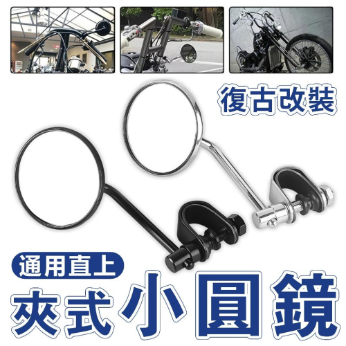 【24小時出貨】復古小圓鏡 夾鏡 夾式 超短桿 後照鏡 陽極黑後視鏡 復古 倒裝 裸把 通用 美式 A59