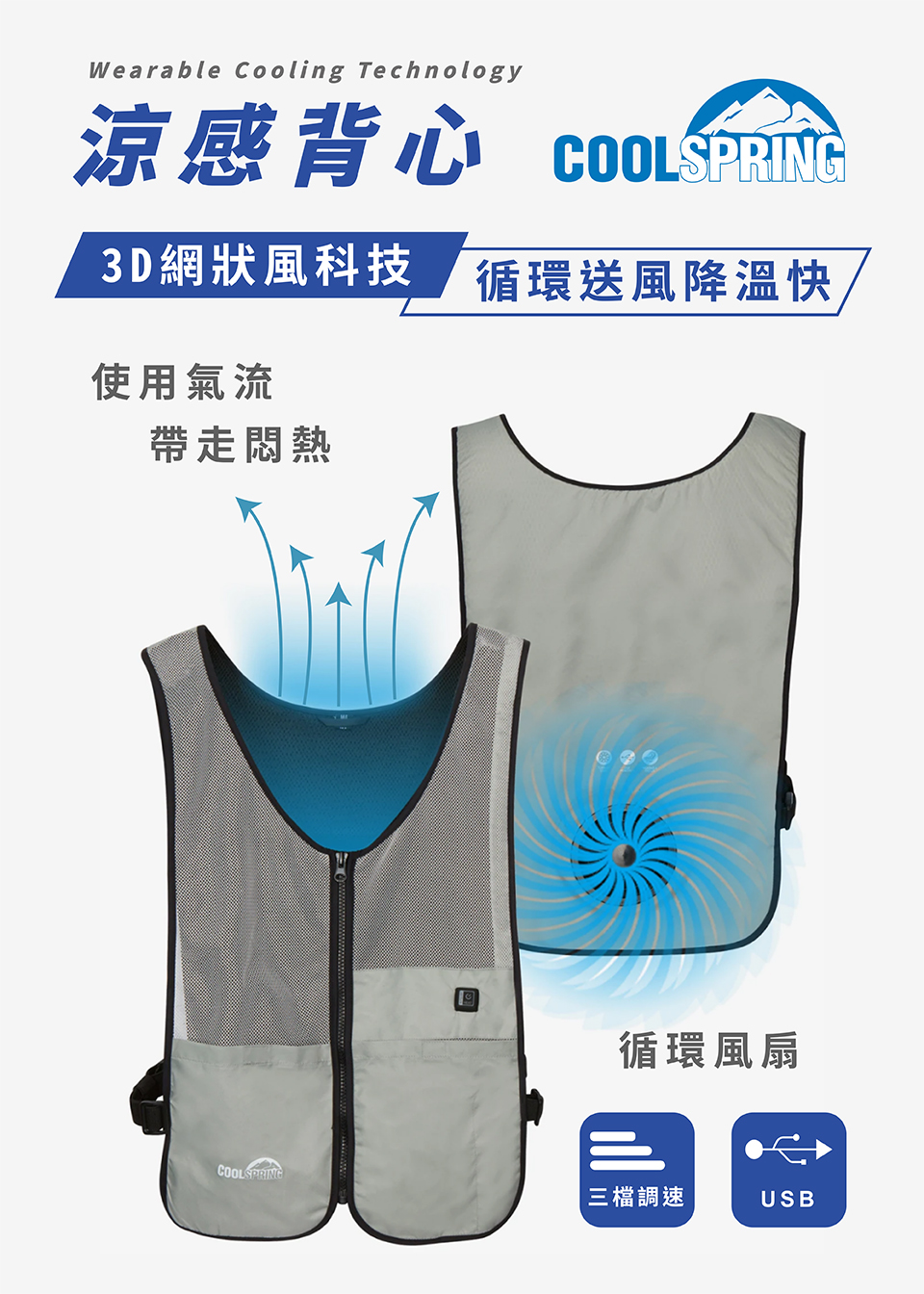 [美國 +venture] USB 行動涼感風扇背心-3XL & 4XL (USB電源、舒適涼扇)