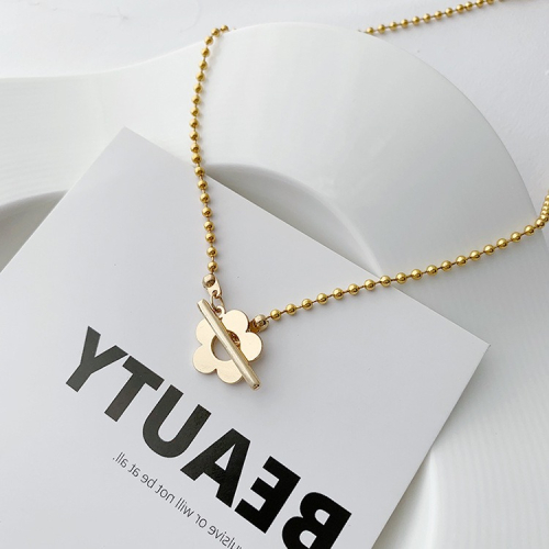 OT扣花朵珠鍊鈦鋼項鍊(金色)(玫瑰金)