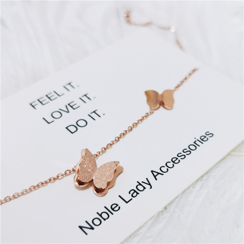 紅色愛心鈦鋼腳鍊(玫瑰金)/磨砂蝴蝶鈦鋼腳鍊(玫瑰金)