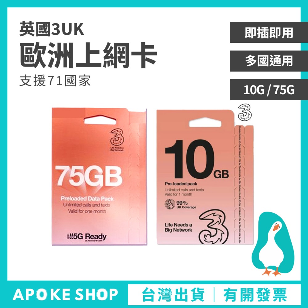 🚩 英國電信 全歐洲漫遊網卡 3UK 美國/歐洲 71國家通用