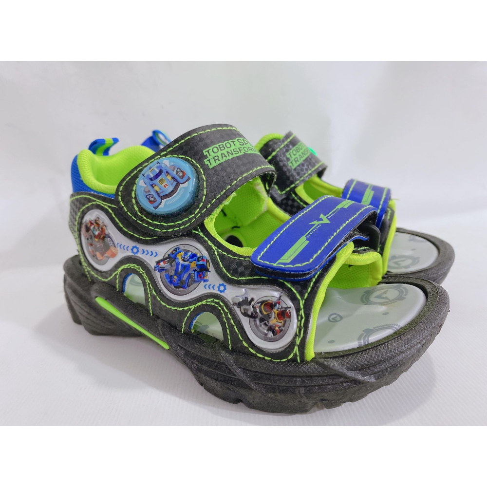 金英鞋坊2館 TOBOT機器戰士 童款造型電燈涼鞋 16055-黑螢光綠 台灣製造 超低直購價290元