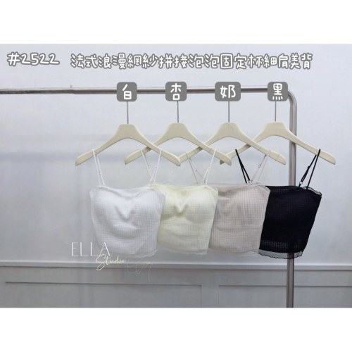【菈菈家】網紗拼接泡泡固定杯細肩美背 #2522