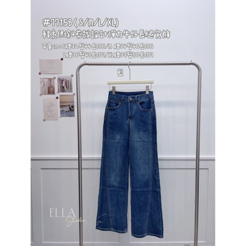 菈菈家 側斜剪裁設計彈力牛仔長腿寬褲 7715B