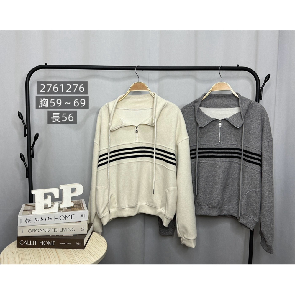 Pin Pin 家 東大門慵懶學院風半拉鏈立領寬鬆羊絨棉衛衣 #61276
