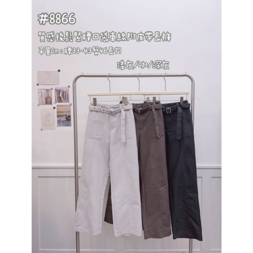 🧚‍♀️【菈菈家】附皮帶厚鬆緊口袋車線長褲 #8866