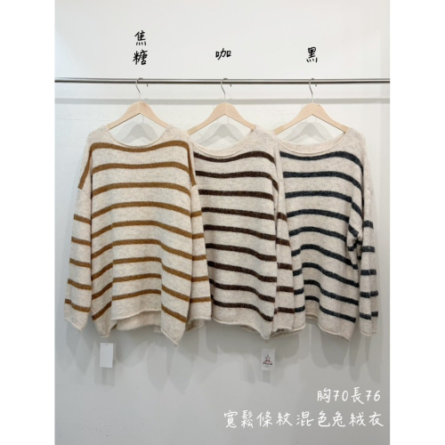 呱呱家 寬鬆條紋混色兔絨衣 ##7058