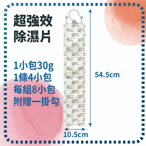 使用方法:打開包裝後將掛勾組裝到除濕片上,即可吊掛於需要除濕的空間。