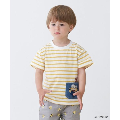 商品 : petit main 小小兵刺繡口袋條紋短T