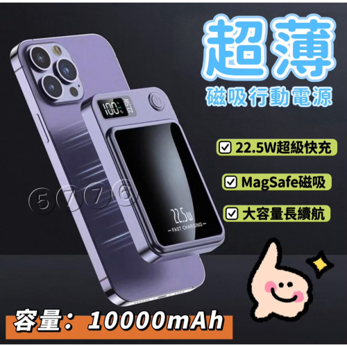 【五七】MagSafe超薄磁吸行動電源10000mAh 可上飛機 雙向快充 無線快充