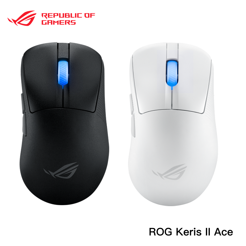 1 x ROG Keris II Ace mouse 1 x ROG Polling Rate Booster 1 x wireless receiver 1 x USB dongle extender 1 x mouse grip tape set 2 x replaceable mouse feet 1 x 2-meter ROG Paracord 1 x warranty booklet 1 x Quick Start Guide 1 x ROG sticker 1 x thank you card