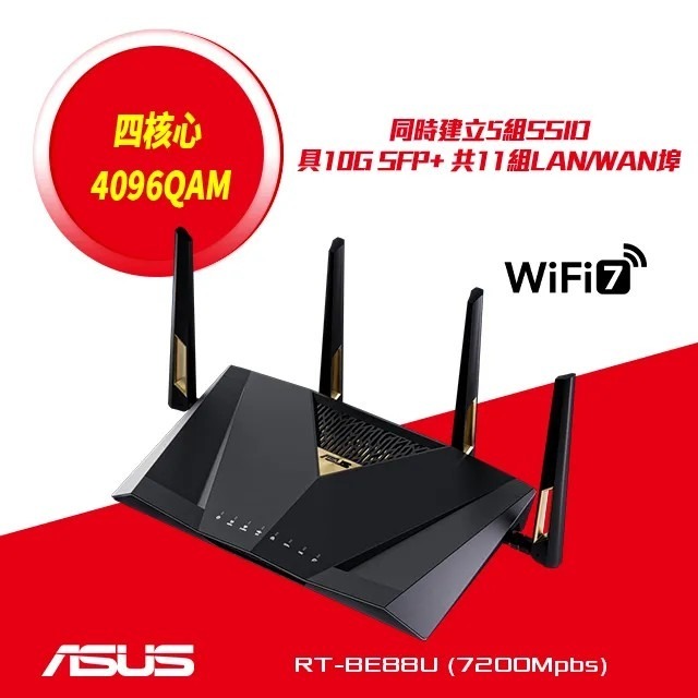 【WiFi 7】ASUS 華碩 RT-BE88U 雙頻 WiFi 7 AiMesh 可擴充路由器