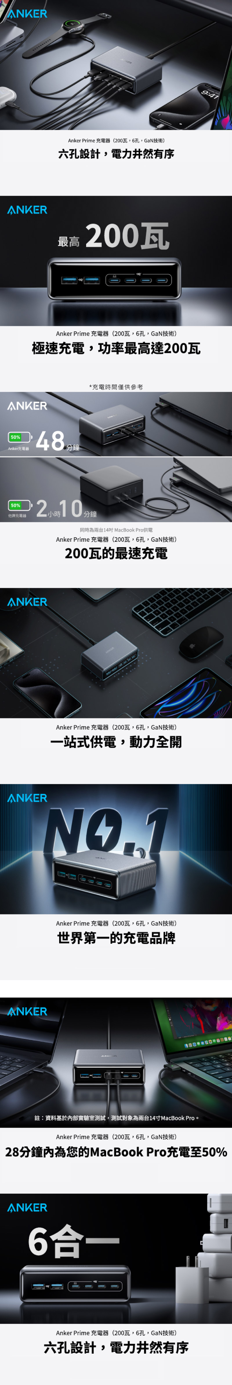 Anker A2683 200W 氮化鎵 6孔 桌面充電器 A2683W41 (4C2A) 銀灰