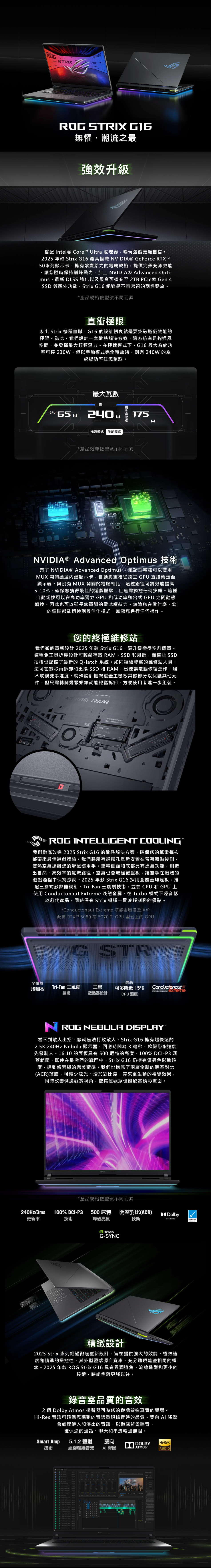螢幕:16吋 16:10(薄邊框) / 2.5K (2560 x 1600, WQXGA) 16:10 / 240Hz / IPS-level / 3ms / DCI-P3 % 100% / G-Sync / Pantone 認證 / Anti-glare / Dolby Vision HDR / ROG Nebula Display /