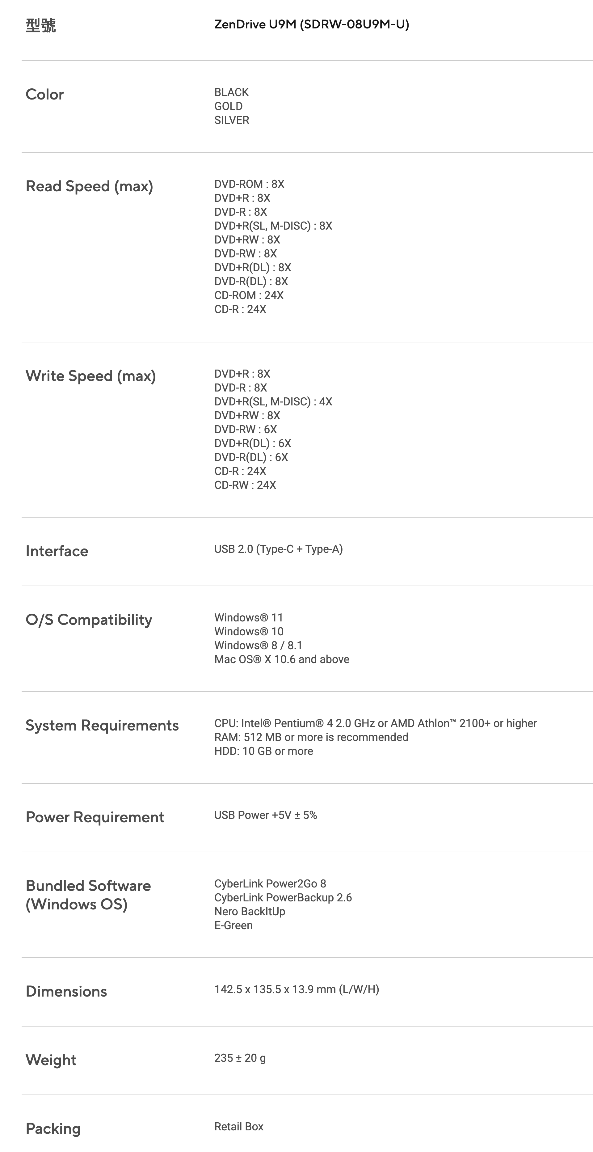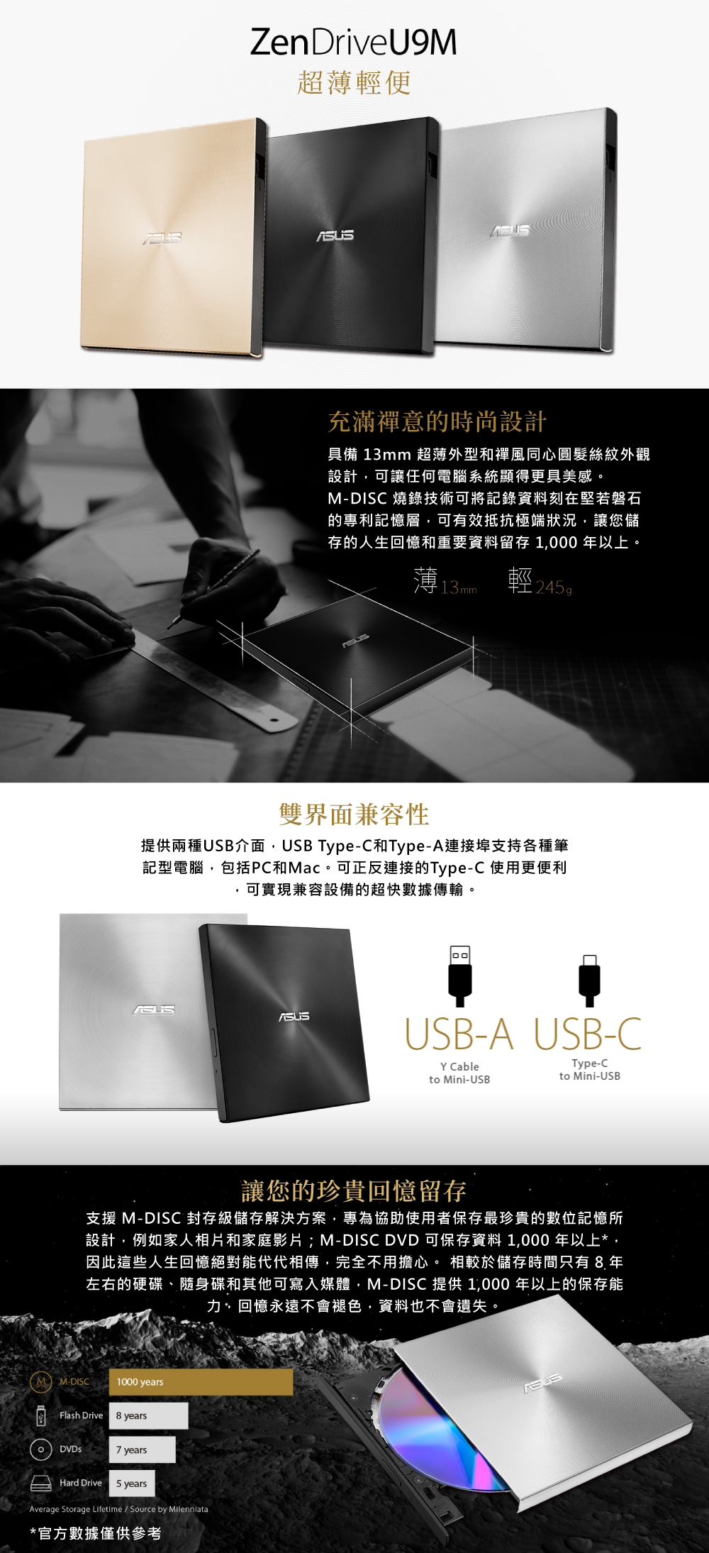 ASUS ZenDrive U9M –美型超薄外接式 8X DVD 燒錄機,支援 M-DISC 終生資料備份