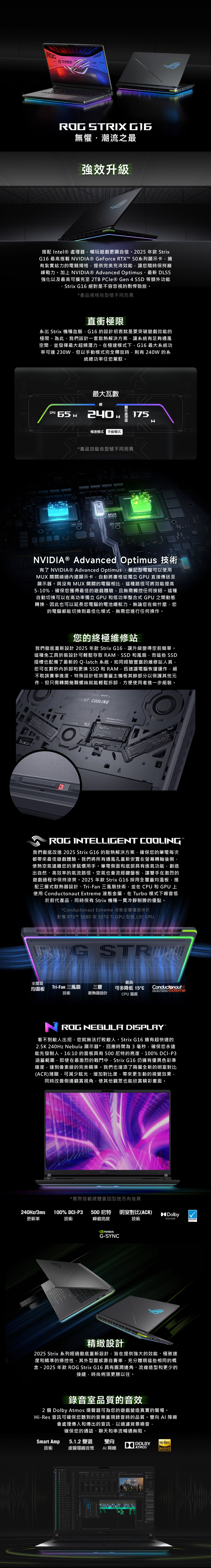 螢幕:16吋 16:10(薄邊框) / 2.5K (2560 x 1600, WQXGA) 16:10 / 240Hz / IPS-level / 3ms / DCI-P3 % 100% / G-Sync / Pantone 認證 / Anti-glare / Dolby Vision HDR / ROG Nebula Display