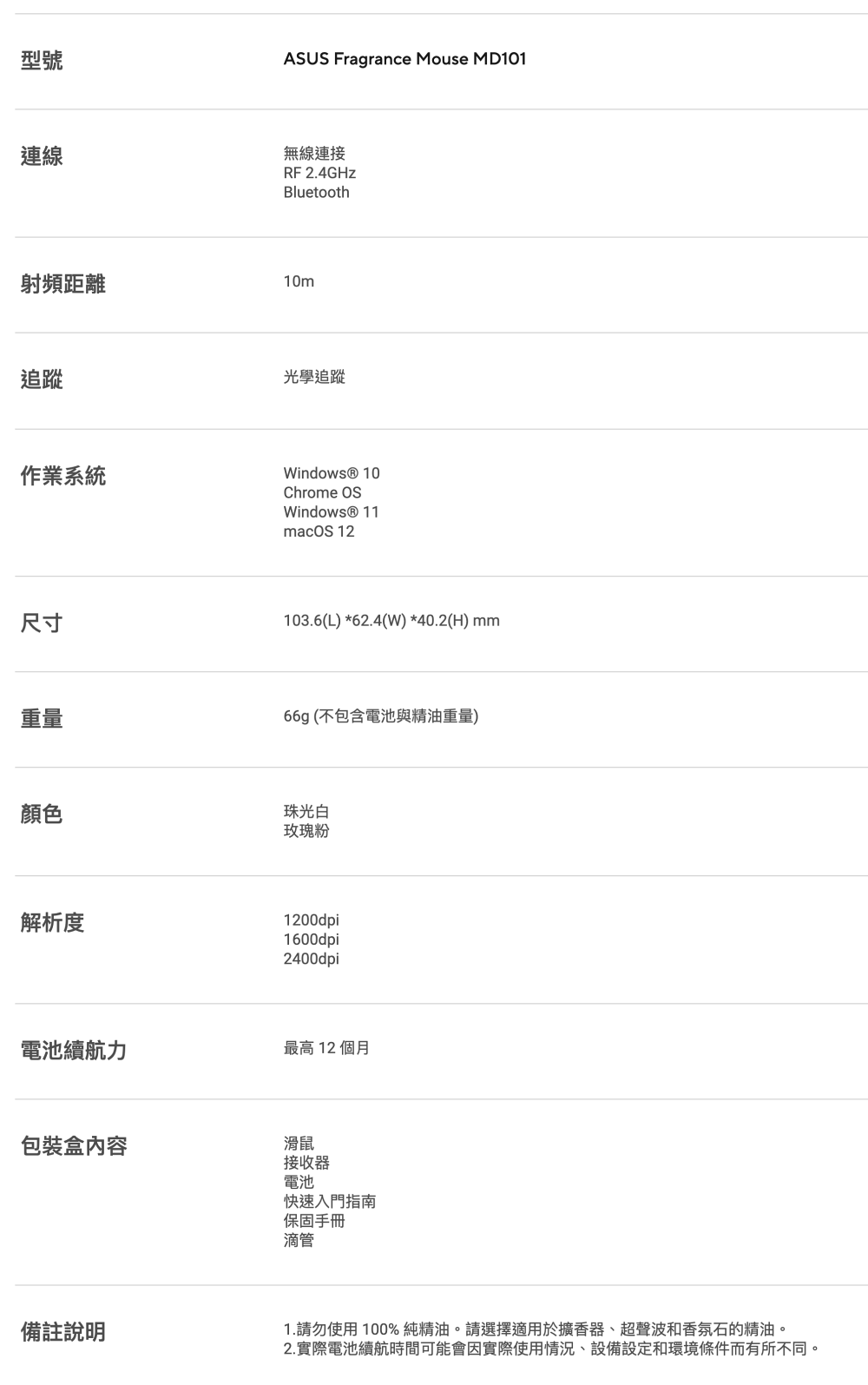 ASUS 無線香氛滑鼠 MD101 無線滑鼠 藍芽滑鼠