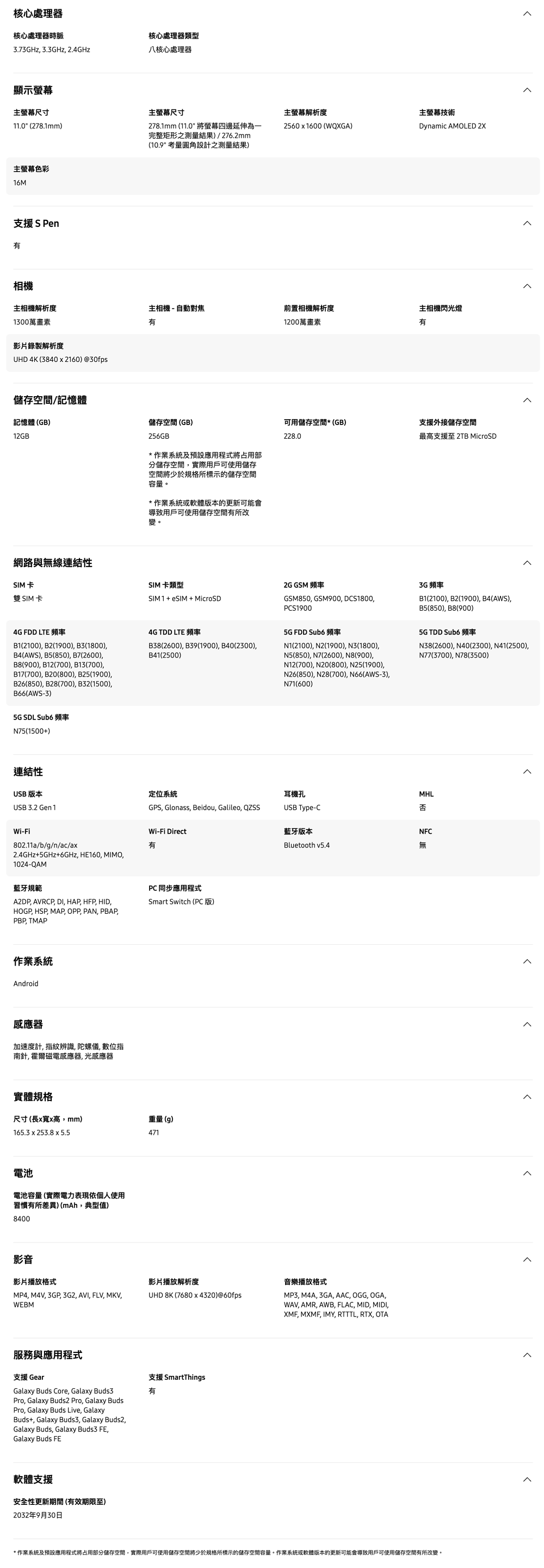 【三星】Samsung Galaxy Tab S11 5G SM-X736 11吋平板電腦 (12G/256GB)