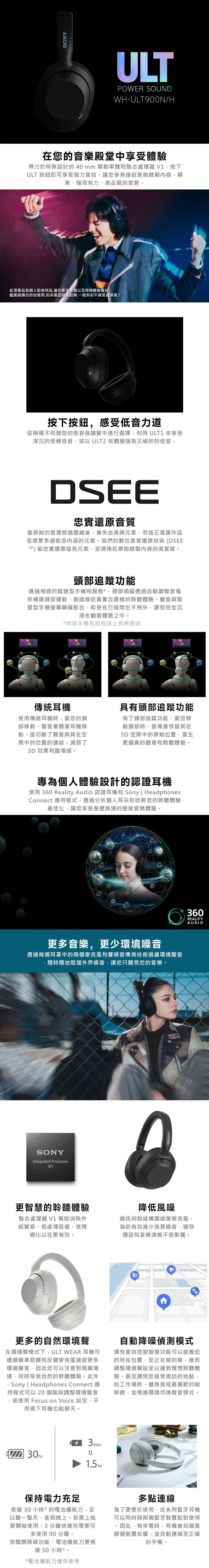 【Sony】SONY ULT WEAR WH-ULT900N無線重低音降噪耳機