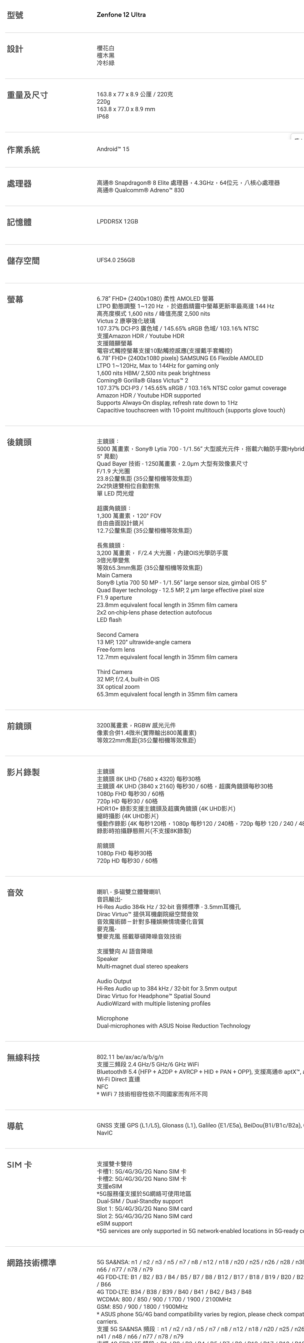 華碩 ASUS Zenfone 12 Ultra (12G/256G) 5G 6 .78吋旗艦智慧型手機
