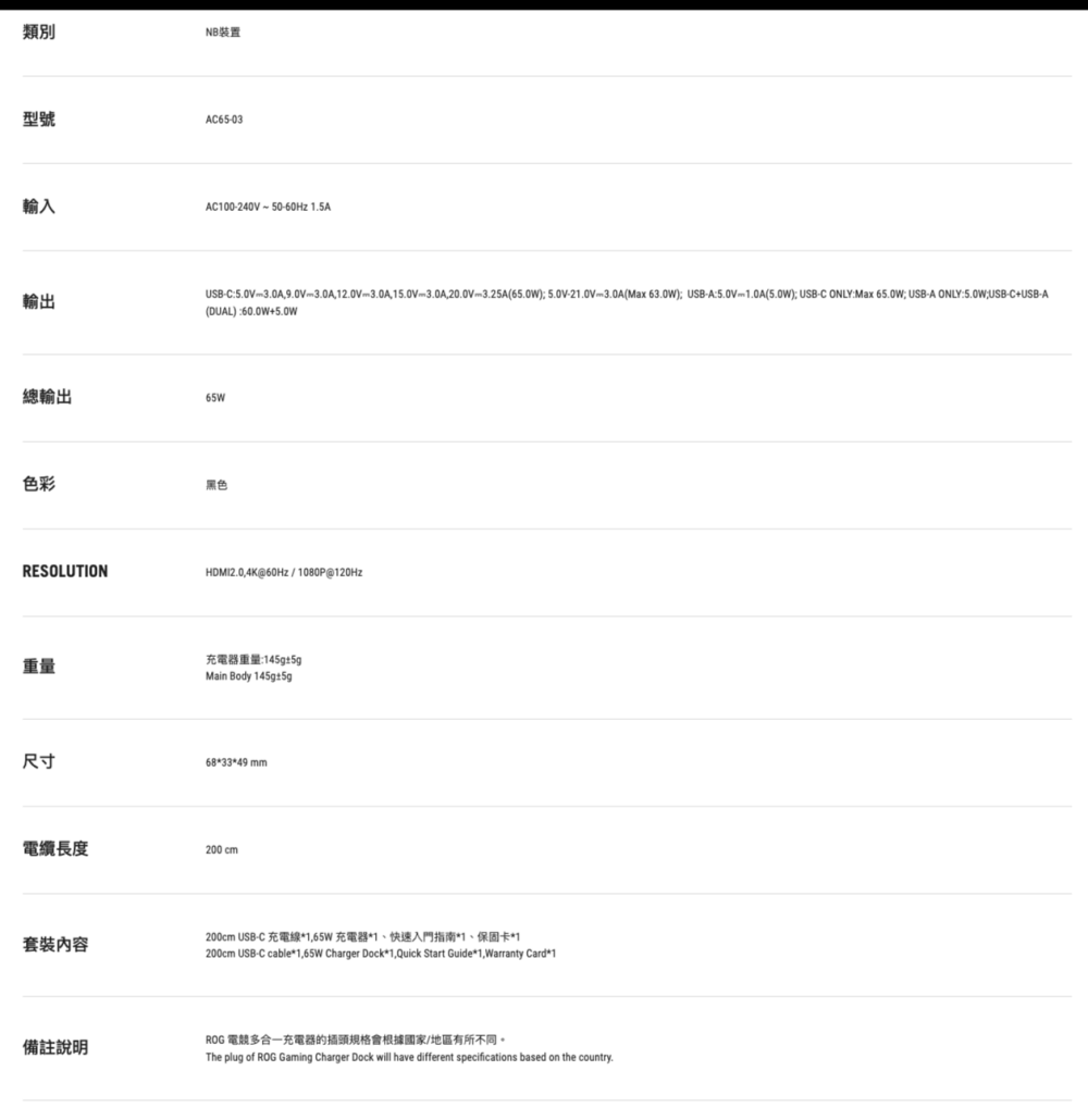 ROG 電競多合一充電器 IO擴充充電 DOCK(AC65-03)