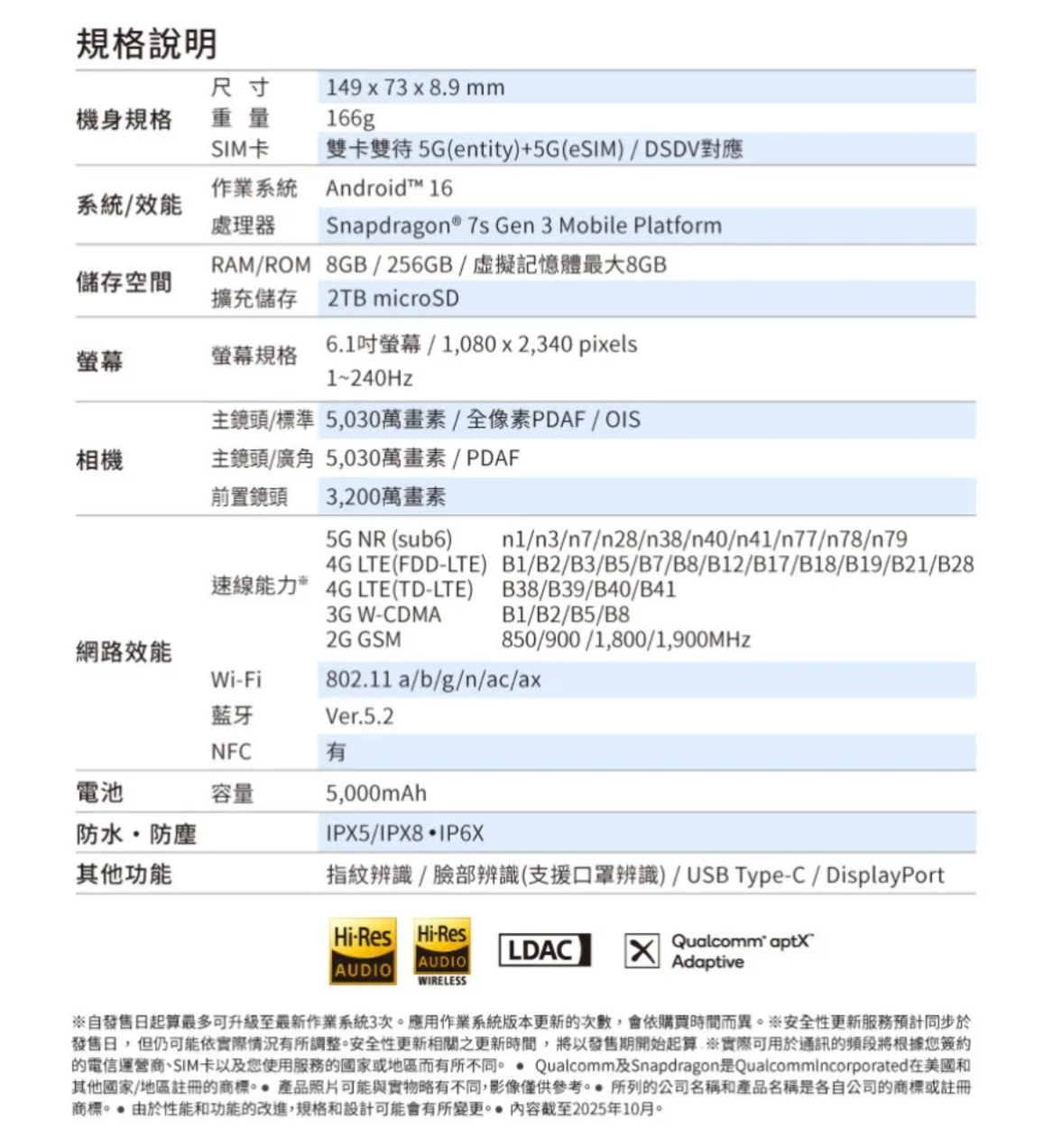配備高階手機2000nit亮度+120Hz可變驅動規格