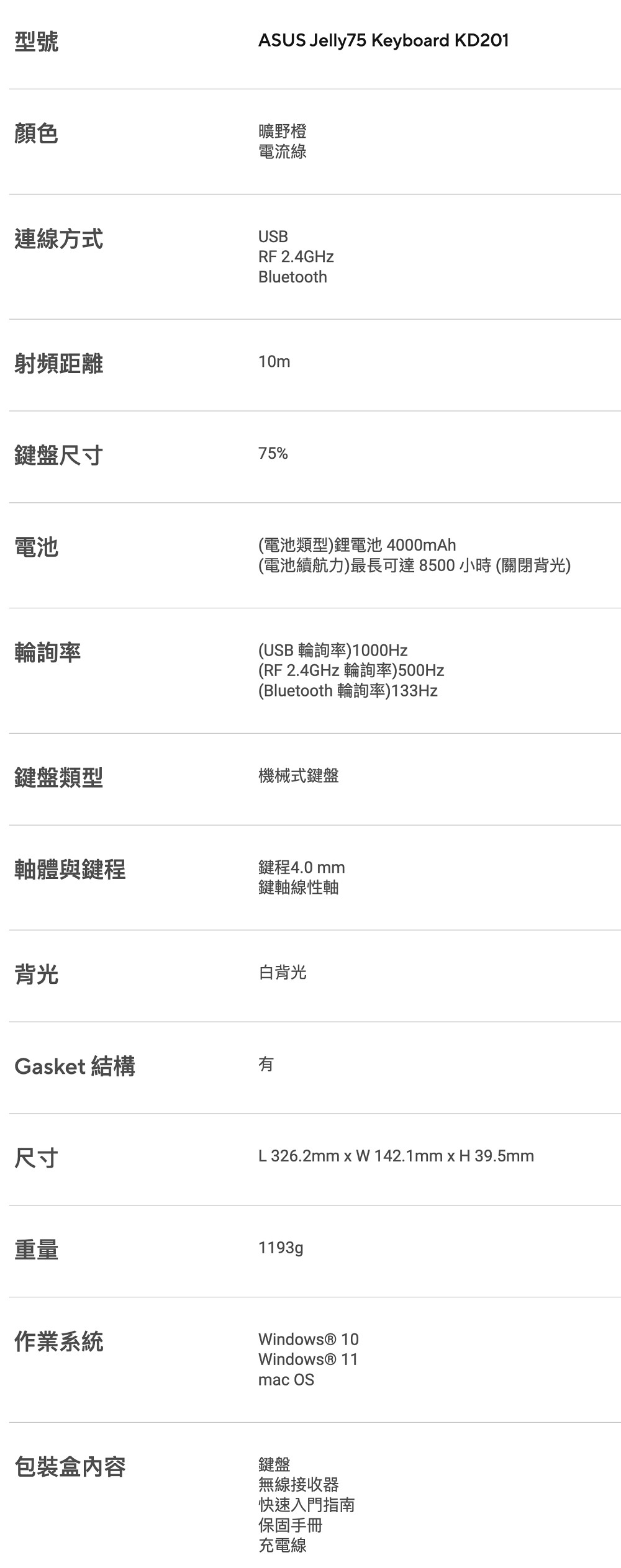 華碩 ASUS Jelly75 無線機械式鍵盤 KD201​