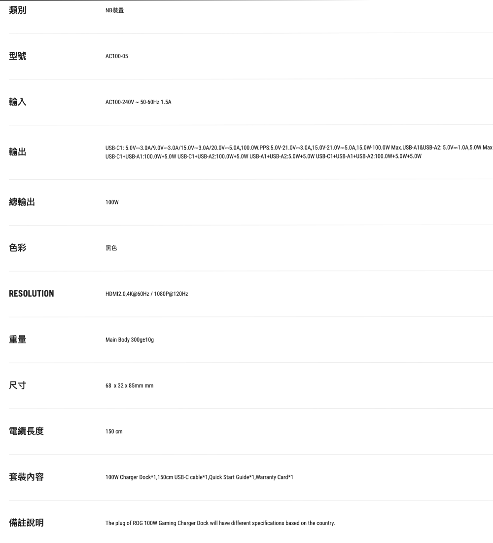 【原廠精品】ROG 100W 多功能電競充電座​ (AC100-05)