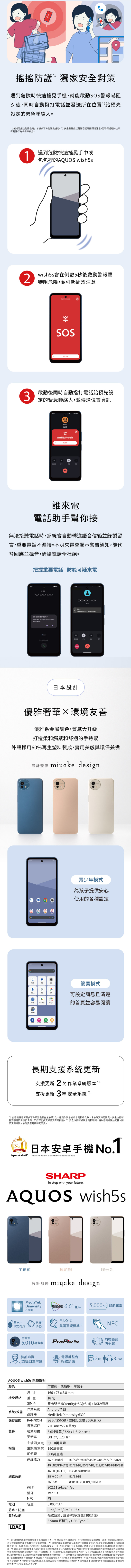 凡購買 SHARP AQUOS wish5s 並於官網完成保固登錄,即贈送