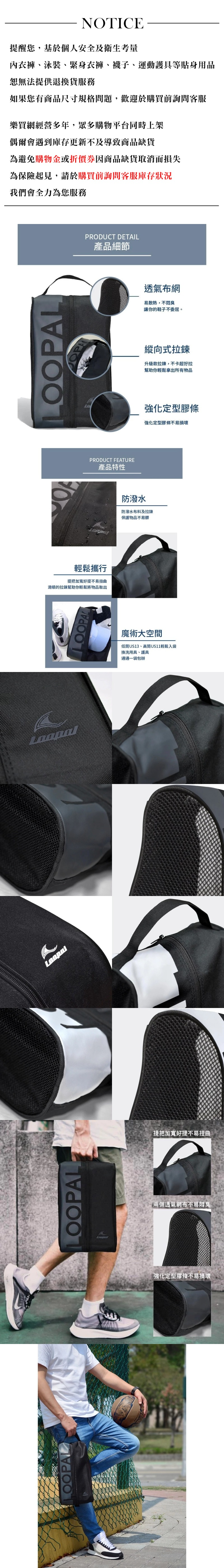 .此款鞋袋可收納最大尺寸約US13、或高筒US11的運動鞋。
