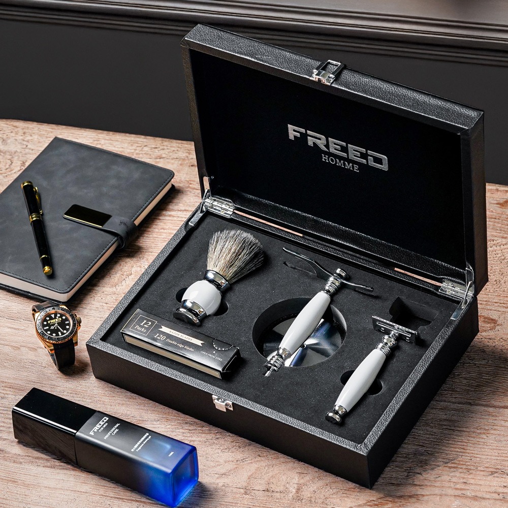 【FREED】兩週年特仕款-雙刃式刮鬍刀豪華禮盒四件組 - 珍珠白