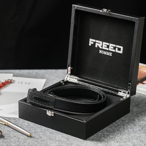【FREED】仿蛇紋黑邊方形扣頭商務休閒頭層牛皮自動皮帶