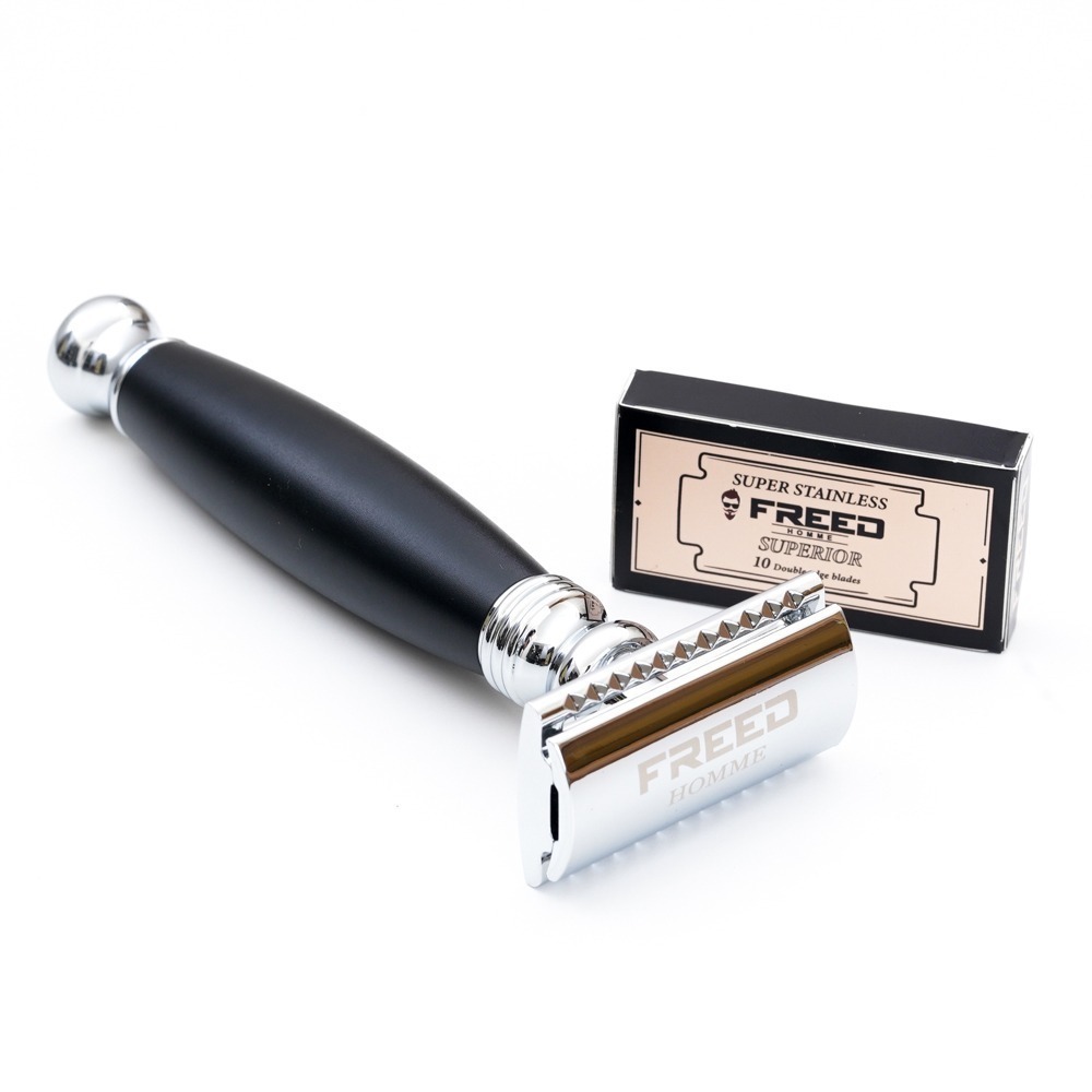 【FREED】封閉式復古雙刃安全刮鬍刀- 極致黑 (附刀片10片)