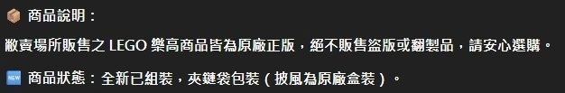 感謝您對 TOY.CHAN 的支持與好評,我們會繼續努力提供更多優質 LEGO 商品,歡迎再度光臨!