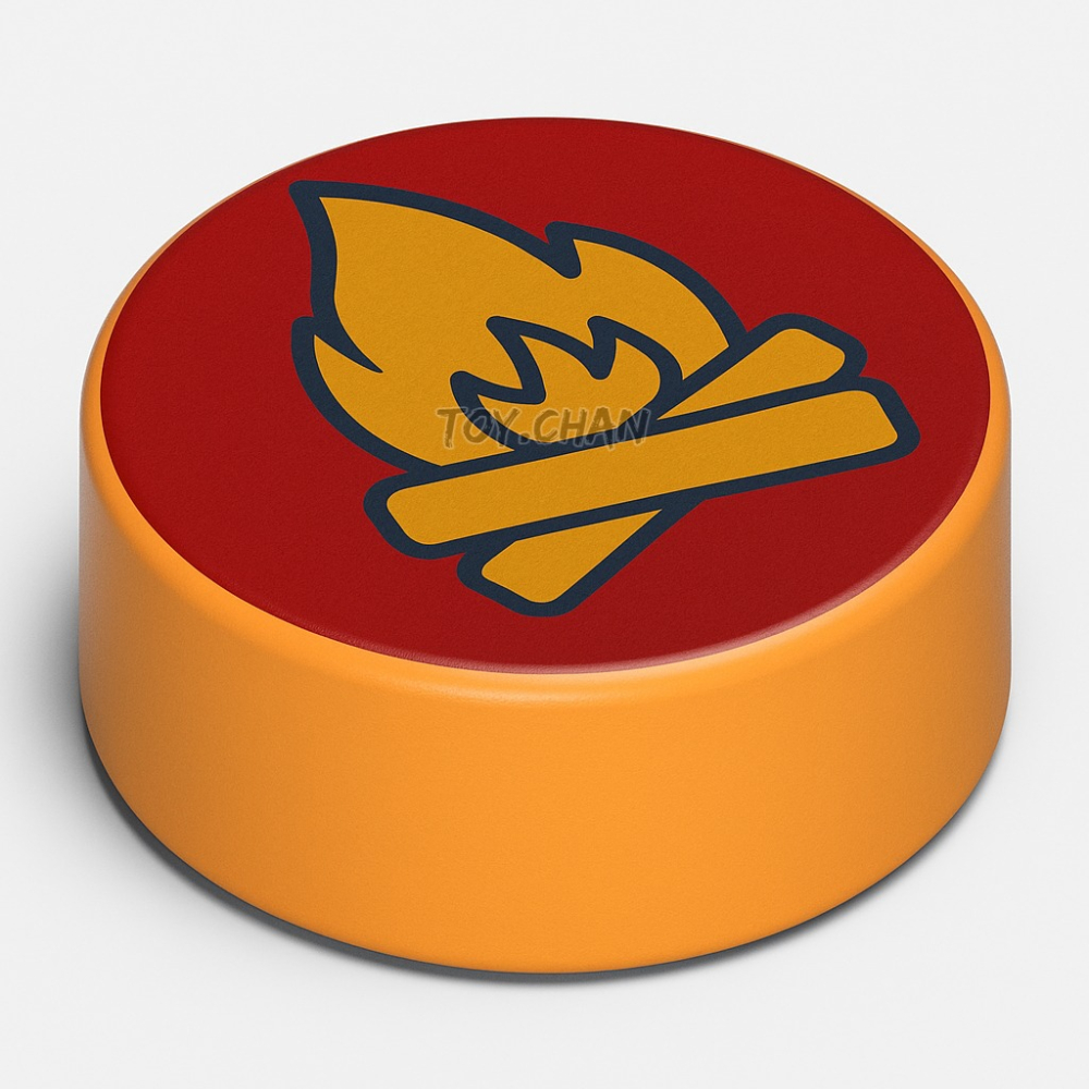 [TOY.CHAN] LEGO 樂高 橘色 篝火圖案 印刷圓形平滑磚 1x1 98138pb413