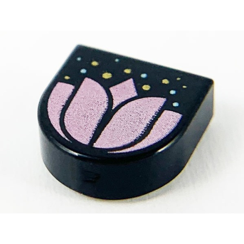 [TOY.CHAN] LEGO 樂高 24246pb003 黑色 印刷平滑磚 粉色花 金色點綴 半圓 1x1