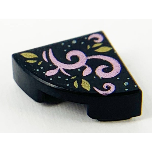 [TOY.CHAN] LEGO 樂高 25269pb012 黑色 印刷平滑磚 粉藤蔓 金葉 亮淺藍點 1/4圓 1x1