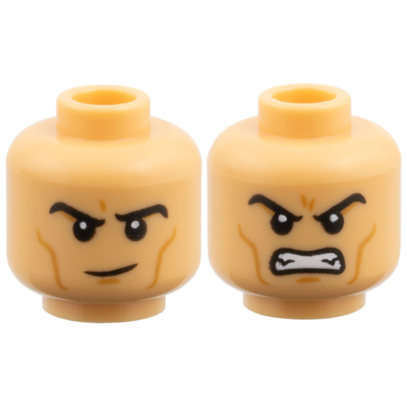 [TOY.CHAN] LEGO 樂高 3626pb3951 中沙色 頭部 雙面 黑眉 酒窩/咬牙怒吼