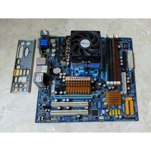 主機板附贈一個AMD風扇及一顆處理器(AMD Athlon II X4 640)及三條2G記憶體(DDR2 800,威剛一條,金士頓兩條),主機板可開機但綠色音源輸出孔聲音輸出有問題(可設定音效管理用藍色音源輸入孔替代此問題或可接USB音效卡替代音源輸出問題),高雄市可面交也可店到店寄送