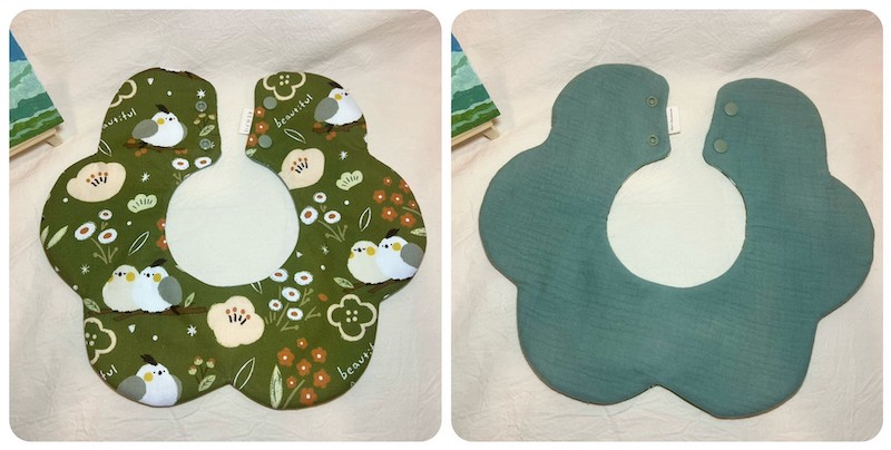 花朵圍兜兜的裡布更是搭配素色泡泡二重紗