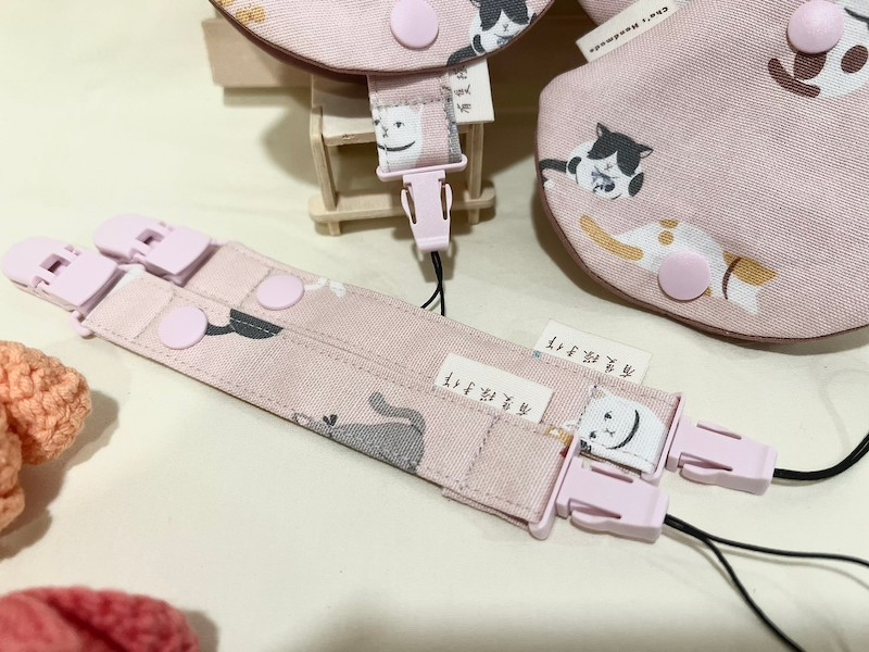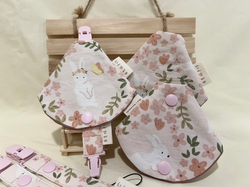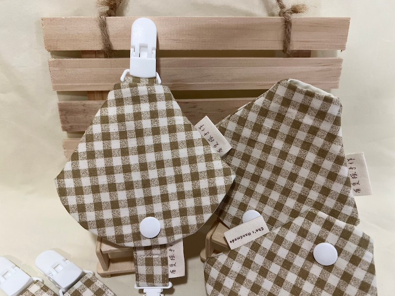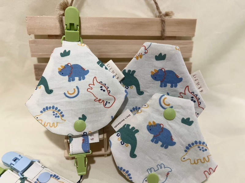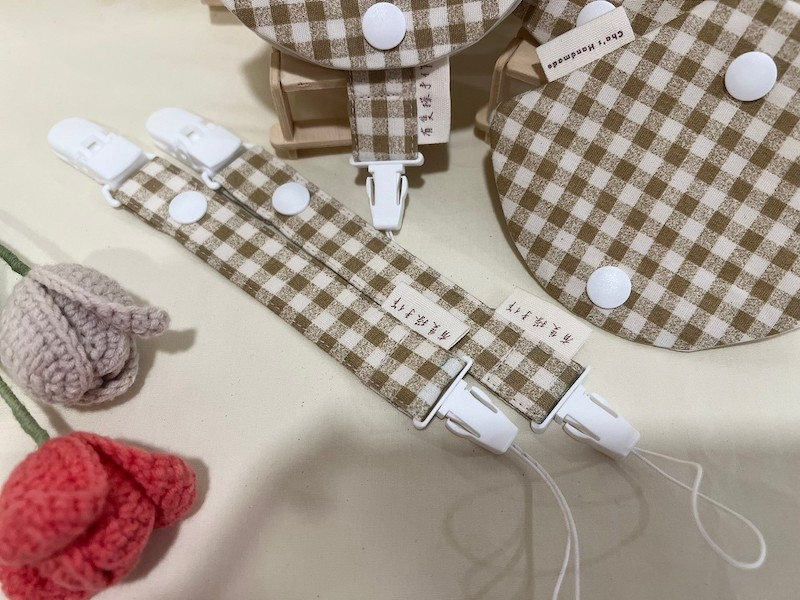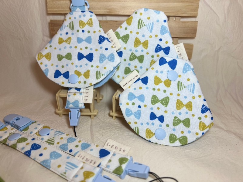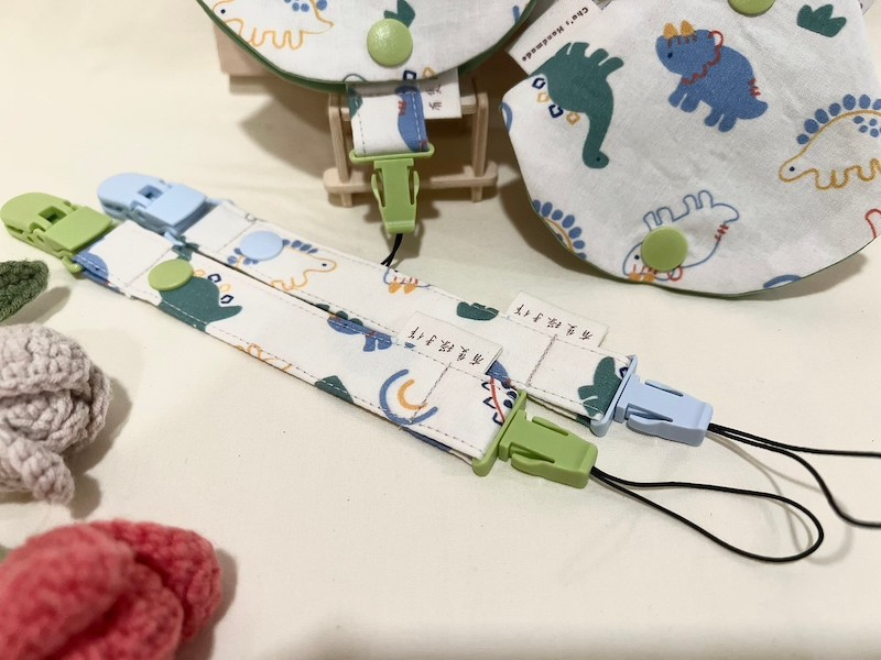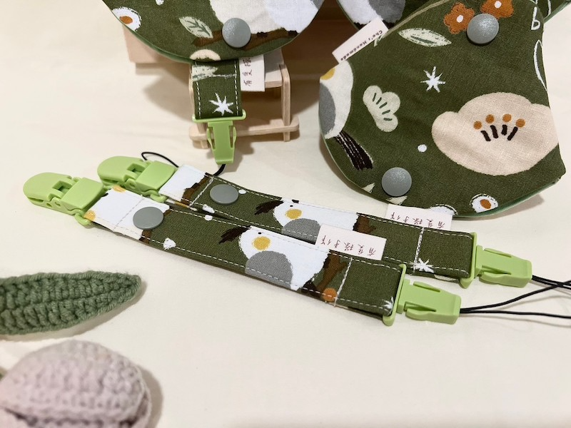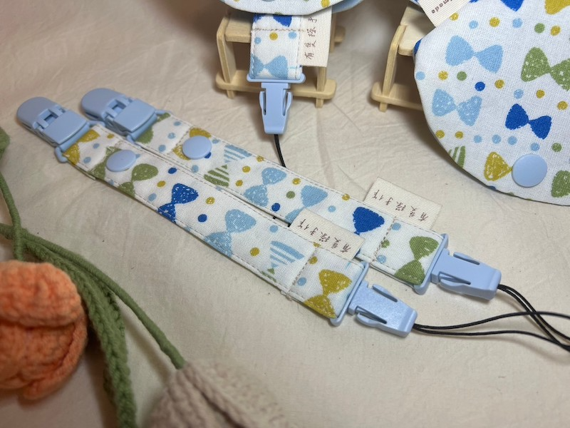 <<闆娘貼心設計:奶嘴套背面上方增加一個扣子,可與奶嘴鏈上的扣子結合,使奶嘴套固定不滑落,奶嘴收納起來,寶貝爬行時不拖地>>