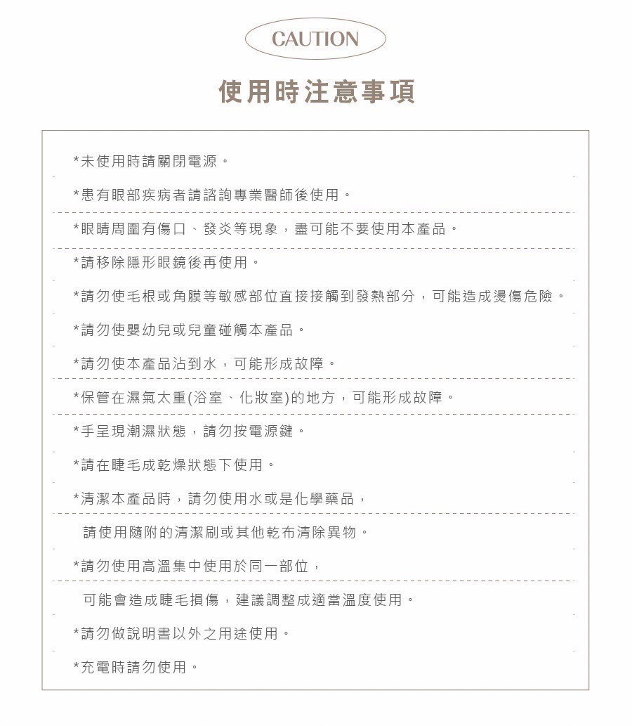 【產品配件】燙睫毛器、清潔刷、使用說明書